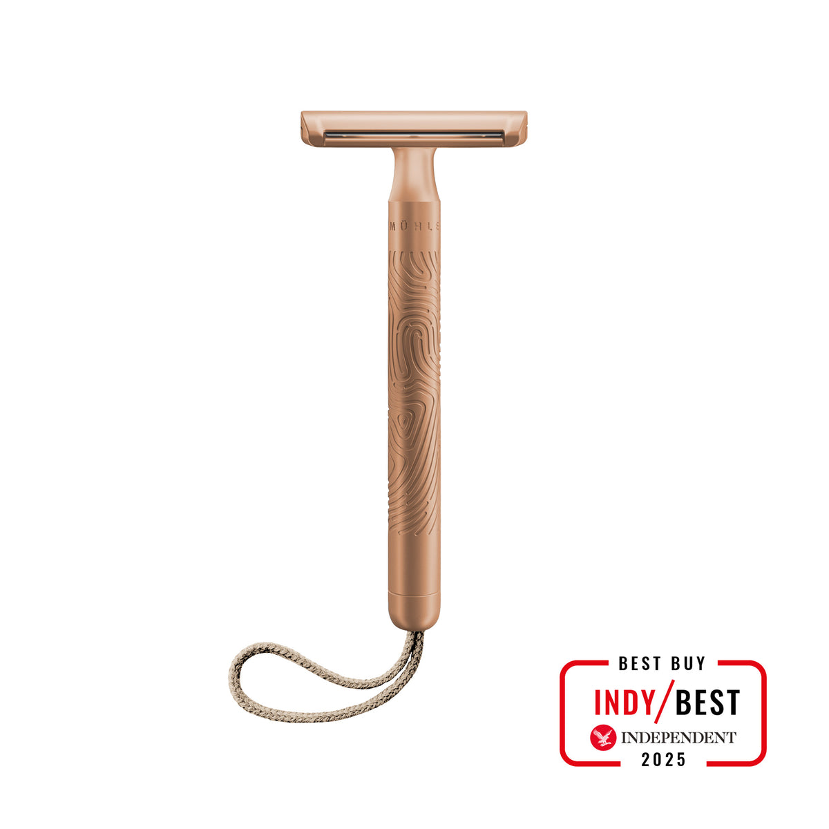 Safety was of paramount importance while developing the first unisex model: The new design of the shaver head with a finely adjusted blade angle ensures even greater safety. At the same time, the handle with extra grip and resembles fingerprints is slightly longer than other MÜHLE shavers. This makes shaving your legs and other parts of your body a blissful experience. COMPANION features traditional blades – and thus genuine sustainability in your bathroom. The cord made of pure cotton can also be replaced easily by extending the rear part of the handle.